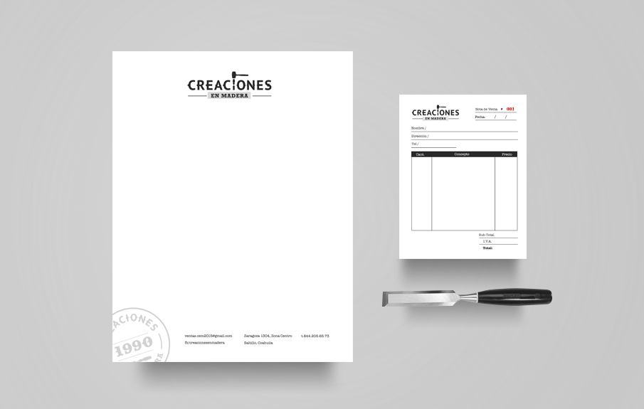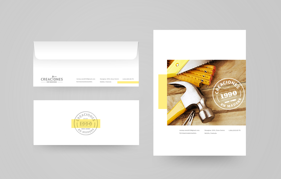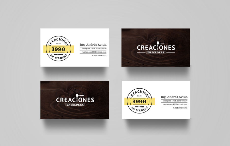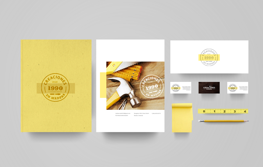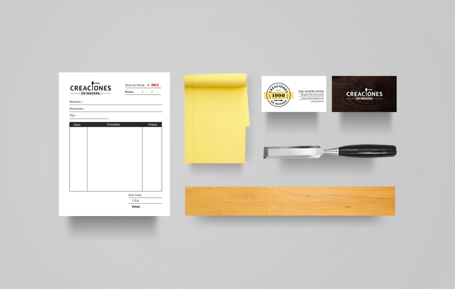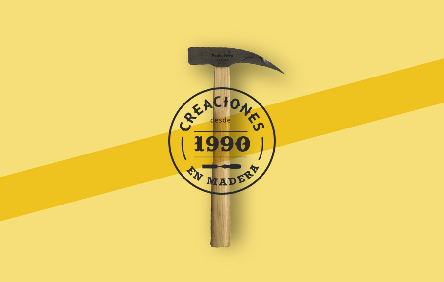 Un taller de carpintería con 25 años de experiencia, creando siempre sensaciones nuevas con el trabajo que realizan. Se utilizo un acomodo tipográfico complementado con el elemento del martillo y el formón en forma de i , para mostrar elementos que se asocien con la carpintería.